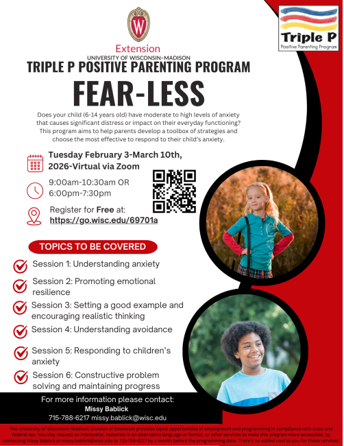 Worried about your child’s anxiety? Fear‑Less, part of the Triple P Positive Parenting Program, offers parents tools and strategies to respond effectively, build emotional resilience, and support healthy coping skills at home.