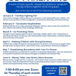 Small Changes, Big Differences! Positive Parenting Program for parents of children 0-12 years old. When? Tuesdays January 16- February 6, 2024. 9:00am-10:30am OR 6:00pm- 7:30pm. The cost is FREE! Classes held online using Zoom: join with computer, tablet, or smartphone without leaving home! Click here to see our flier! Registration: https://go.wisc.edu/qytja0